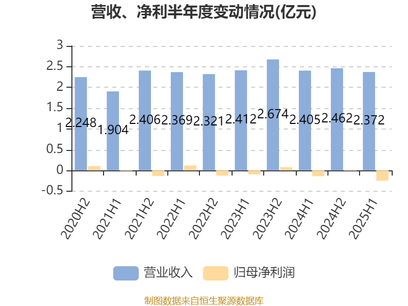 中证智能财讯广泰国际控股(00844)9月25日披露2025年中期报告。报告期内,公司实现营业收入2.37亿元,同比下降1.37%;归母净利润亏损2462.9万元,上年同期亏损1382.2万元;据报告显示,广泰国际控股基本每股收益为-0.05元,平均净资产收益率为-10.23%。
