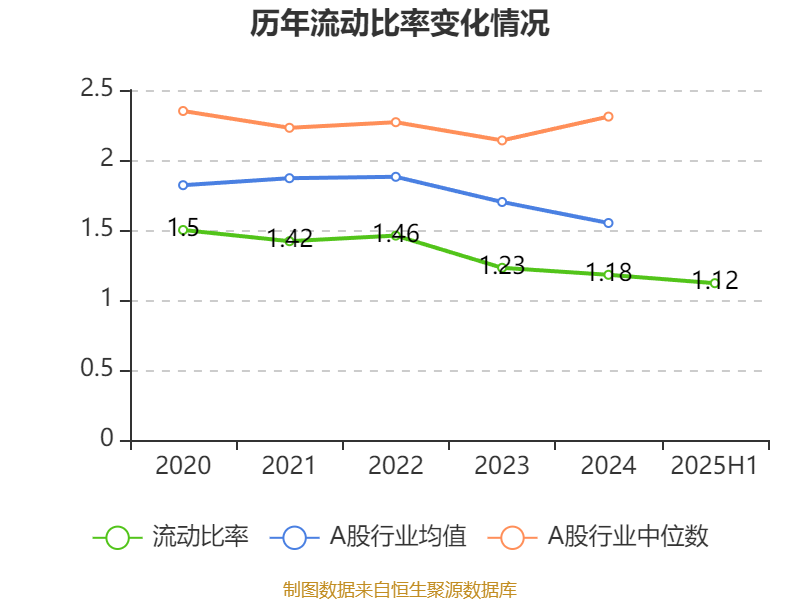 2025年上半年,公司流动比率为1.12,速动比率为0.96。