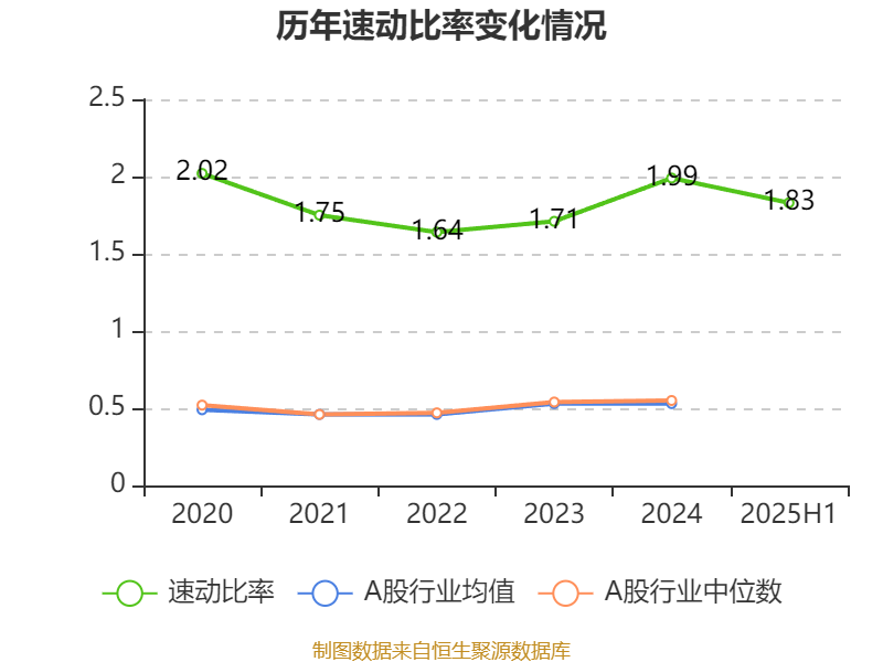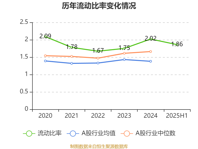 2025年上半年,公司流动比率为1.86,速动比率为1.83。