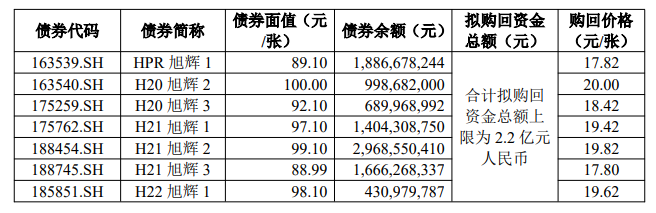 今年9月,旭辉控股集团宣布旗下本金额超10亿元的公司债重组方案均获通过。根据已通过议案,议案通过后3个月内启动债券购回,回购价格为18%的债券面值,但持有人需放弃已产生的全部利息。