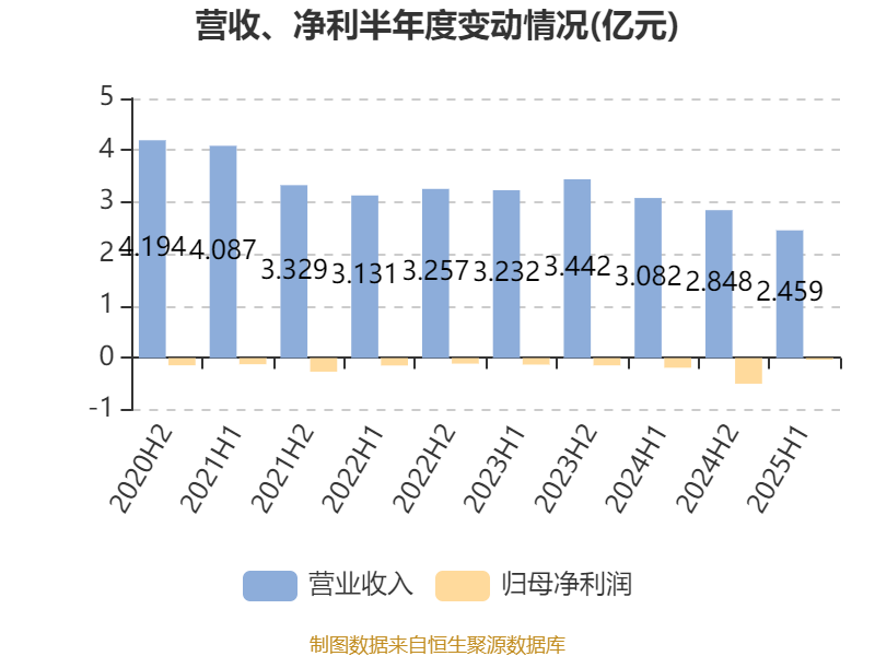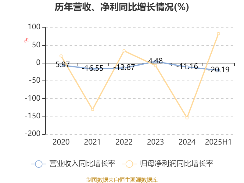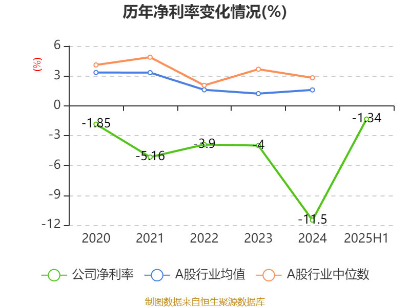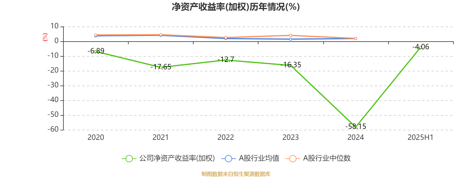 2025年上半年,公司平均净资产收益率为-4.06%,较上年同期上升9.17个百分点。