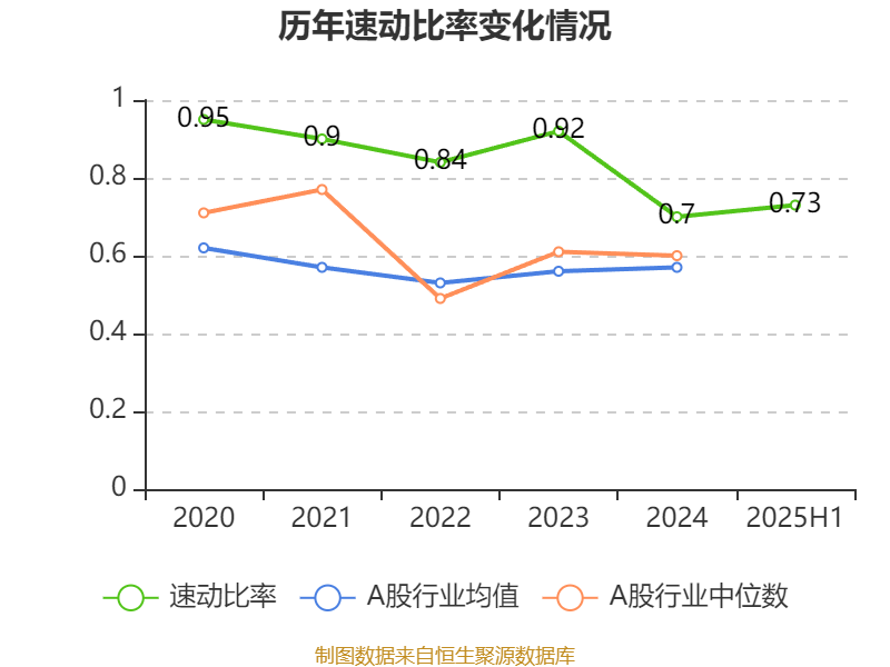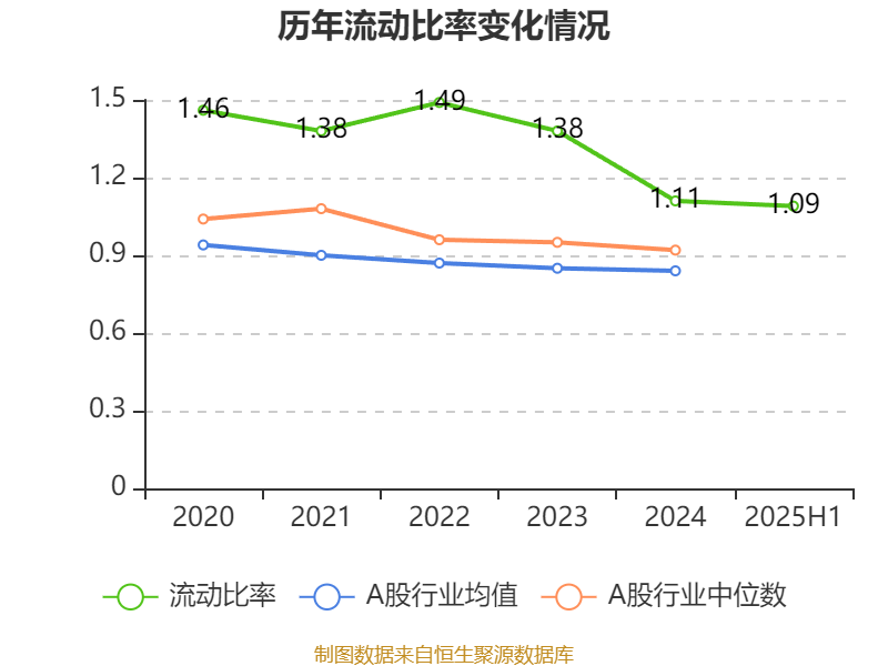 2025年上半年,公司流动比率为1.09,速动比率为0.73。