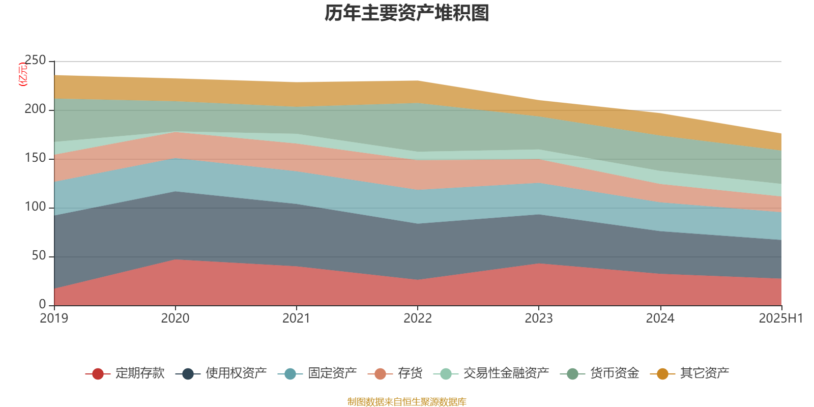 资产重大变化方面,截至2025年上半年,公司划分为持有待售的资产较上期末减少100%,占公司总资产比重下降1.81个百分点;固定资产较上期末减少3.93%,占公司总资产比重上升1.12个百分点;货币资金较上期末减少5.57%,占公司总资产比重上升1.03个百分点;定期存款较上期末减少15.23%,占公司总资产比重下降0.85个百分点。