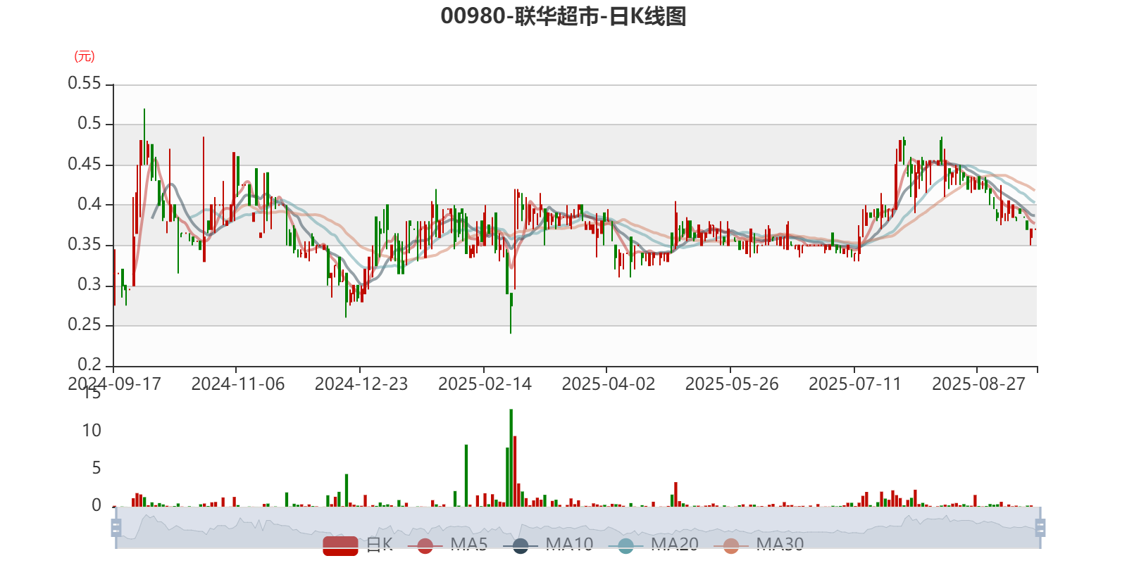 中证智能财讯联华超市(00980)9月17日披露2025年中期报告。报告期内,公司实现营业收入95.91亿元,同比下降11.98%;归母净利润4224.6万元,同比扭亏;据报告显示,联华超市基本每股收益为0.031元。