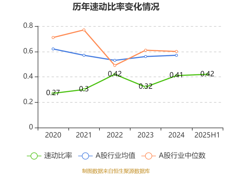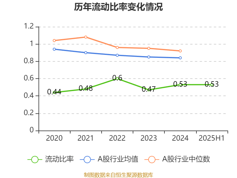 2025年上半年,公司流动比率为0.53,速动比率为0.42。