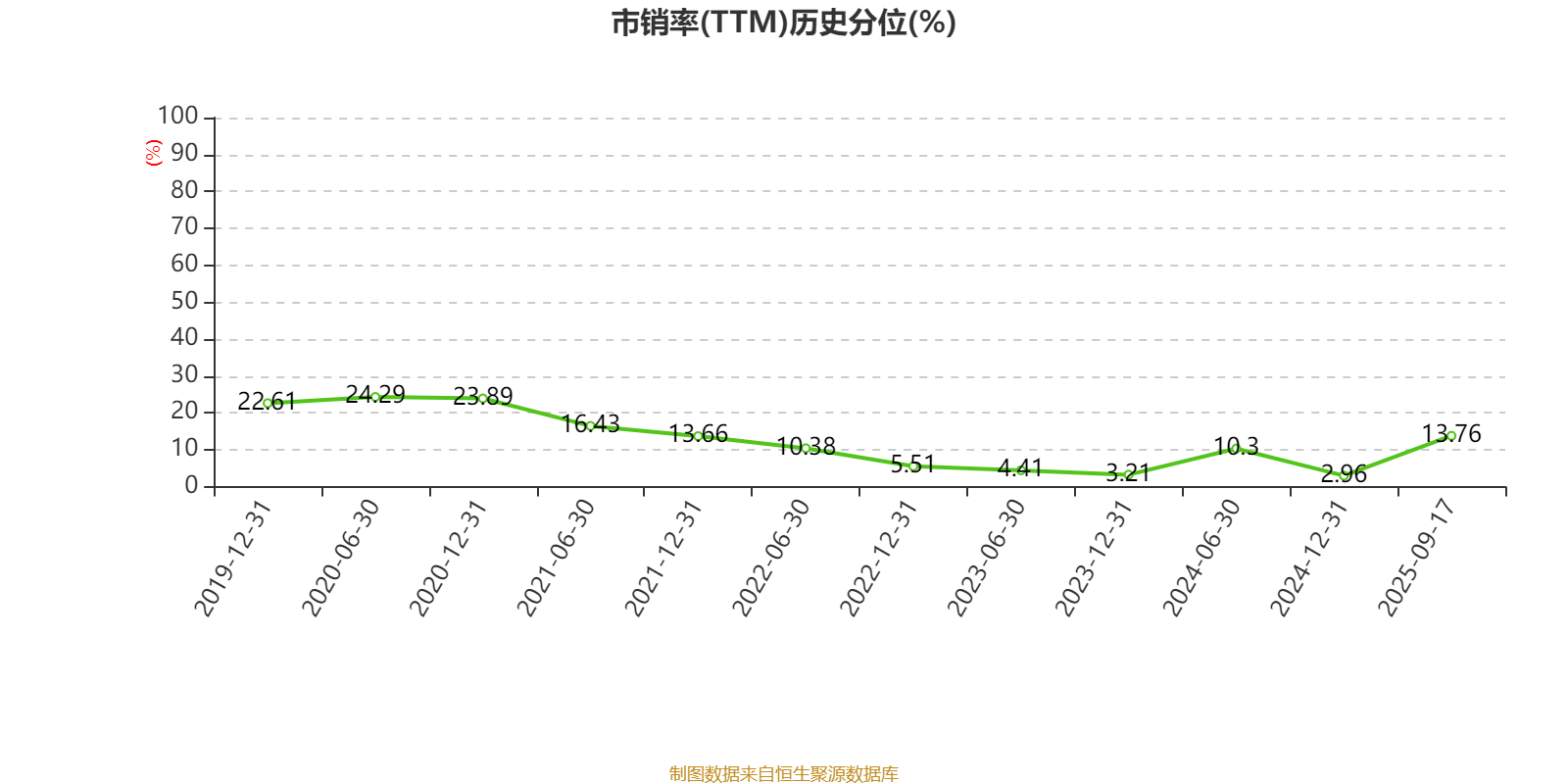 以9月17日收盘价计算,联华超市目前市净率(TTM)约4.44倍,市销率(TTM)约0.03倍。