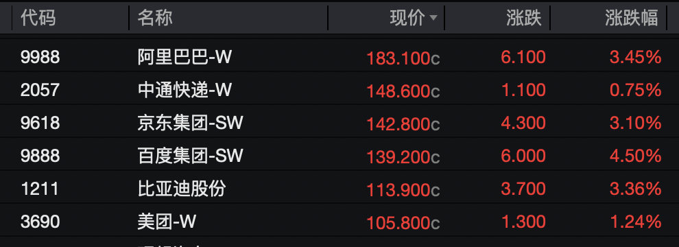 港股科网股周四也集体走强,截至收盘,阿里巴巴、京东集团涨超3%,网易、美团涨超1%,快手涨超8%。