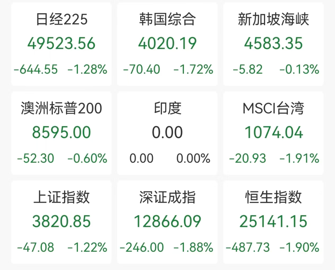 亚太股市全线下跌 港股阿里、中芯国际跌近4% 金银跳水