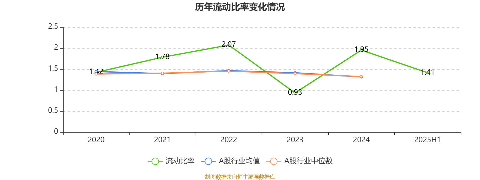 2025年上半年,公司流动比率为1.41。