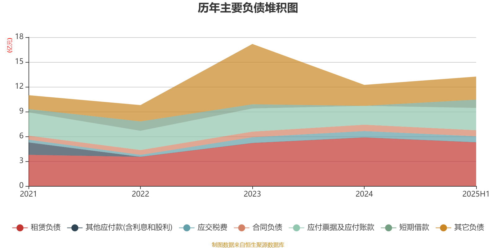 负债重大变化方面,截至2025年上半年,公司短期借款占公司总资产的2.71%,上期末为0;租赁负债较上期末减少10%,占公司总资产比重下降2.06个百分点;应付票据及应付账款较上期末增加18.53%,占公司总资产比重上升0.96个百分点;递延所得税负债占公司总资产的0.76%,上期末为0。