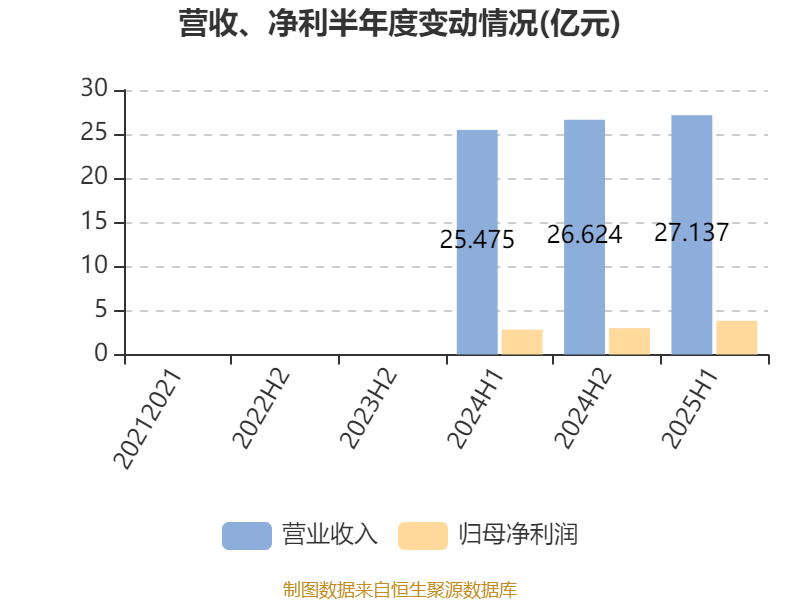 中证智能财讯小菜园(00999)9月17日披露2025年中期报告。报告期内,公司实现营业收入27.14亿元,同比增长6.52%;归母净利润3.82亿元,同比增长35.66%;据报告显示,小菜园基本每股收益为0.33元,平均净资产收益率为16.27%。公司2025年中期分配预案为:每股派息0.2119元人民币相当于0.2331港元。