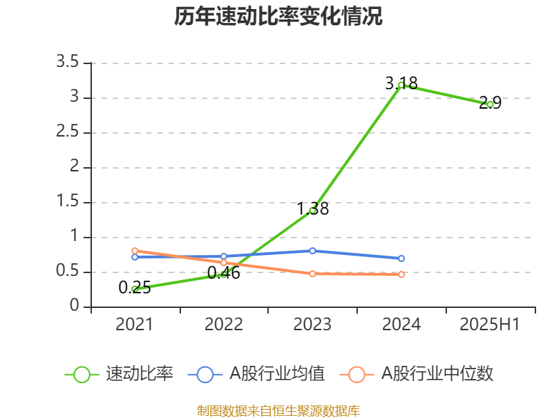 2025年上半年,公司流动比率为3.00,速动比率为2.9。