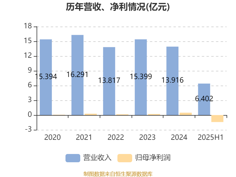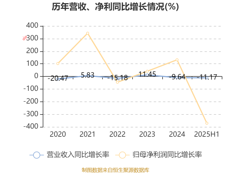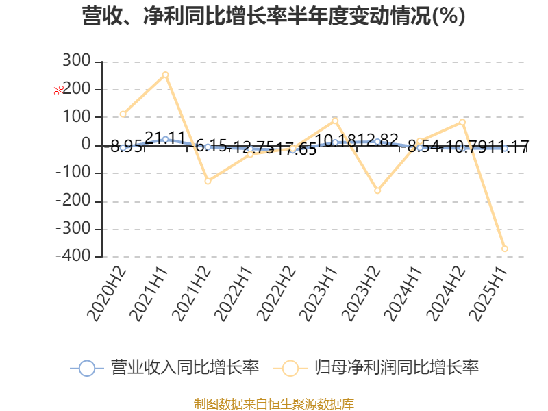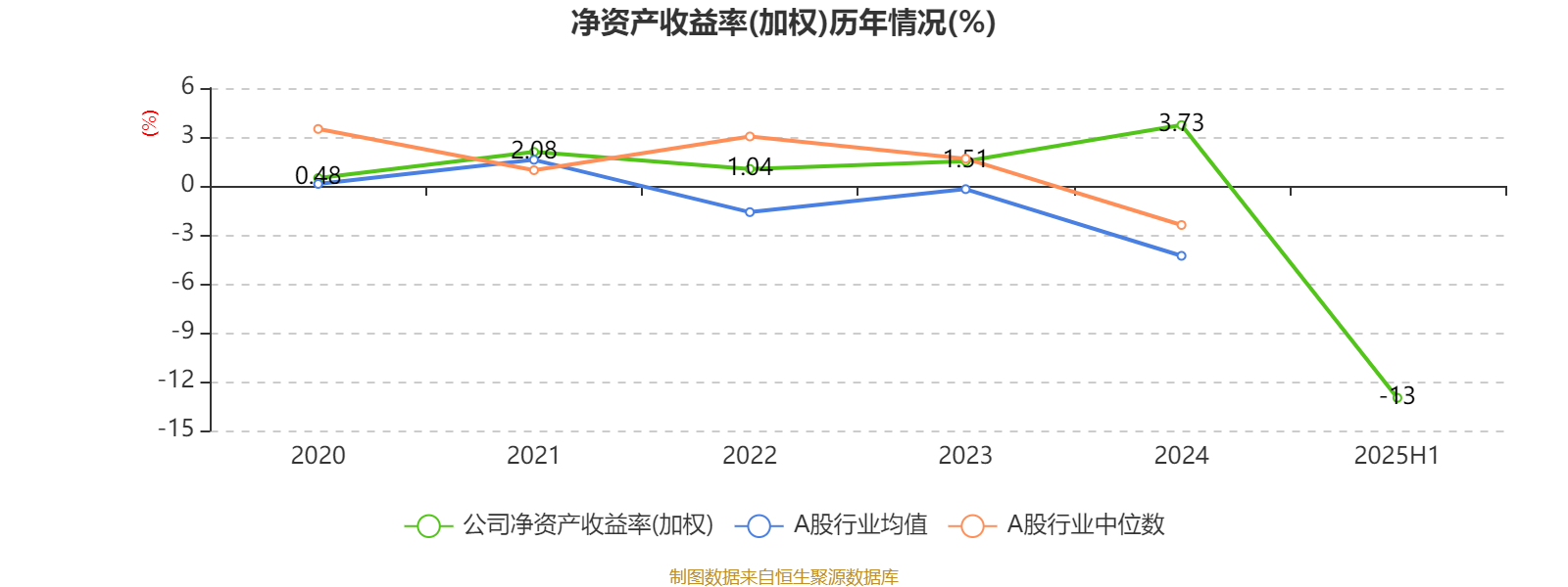 2025年上半年,公司平均净资产收益率为-13%,较上年同期下降17.08个百分点。
