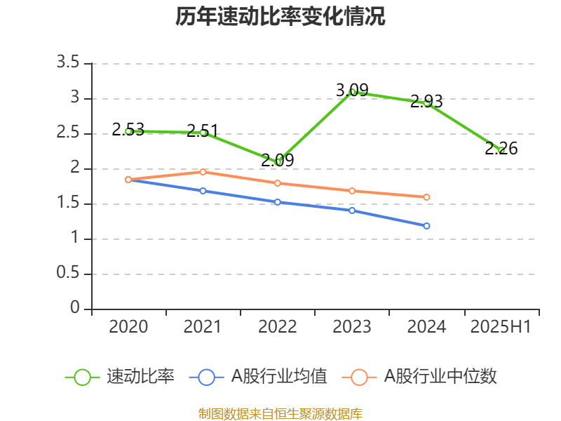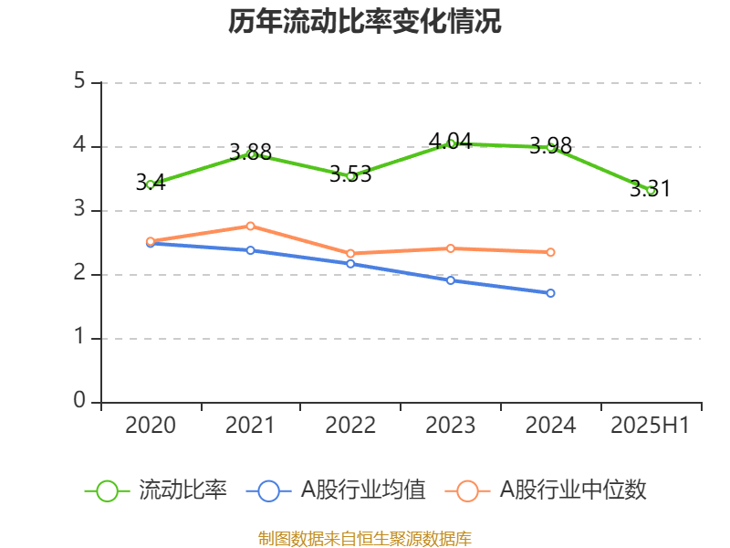 2025年上半年,公司流动比率为3.31,速动比率为2.26。