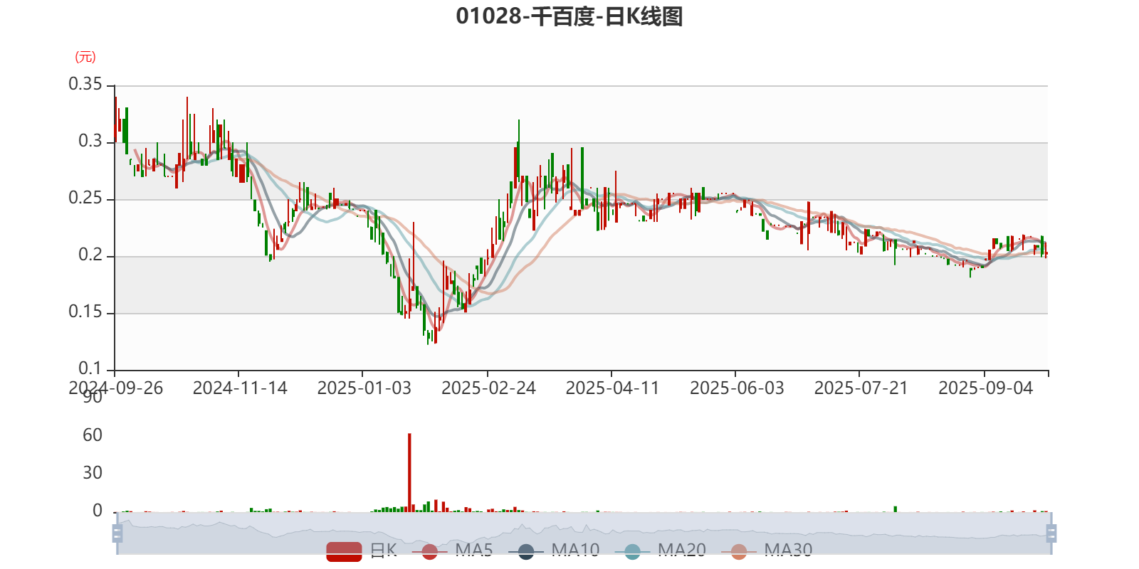 中证智能财讯千百度(01028)9月26日披露2025年中期报告。报告期内,公司实现营业收入6.4亿元,同比下降11.17%;归母净利润亏损1.42亿元,上年同期盈利5241.4万元;据报告显示,千百度基本每股收益为-0.0684元,平均净资产收益率为-13%。