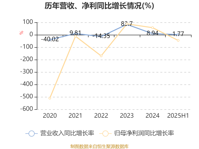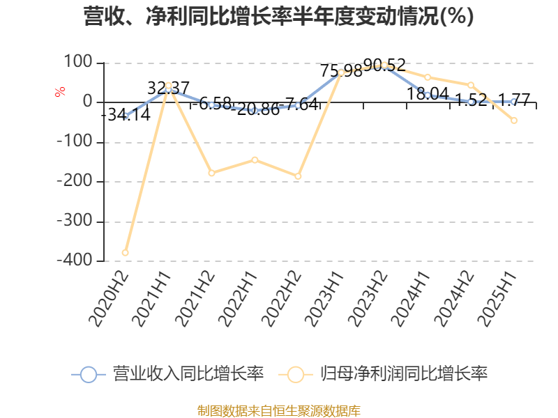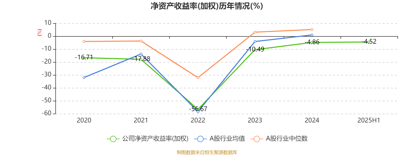 2025年上半年,公司平均净资产收益率为-4.52%,较上年同期下降1.64个百分点。