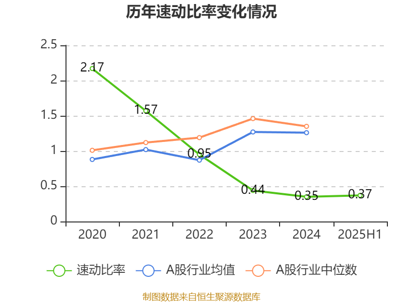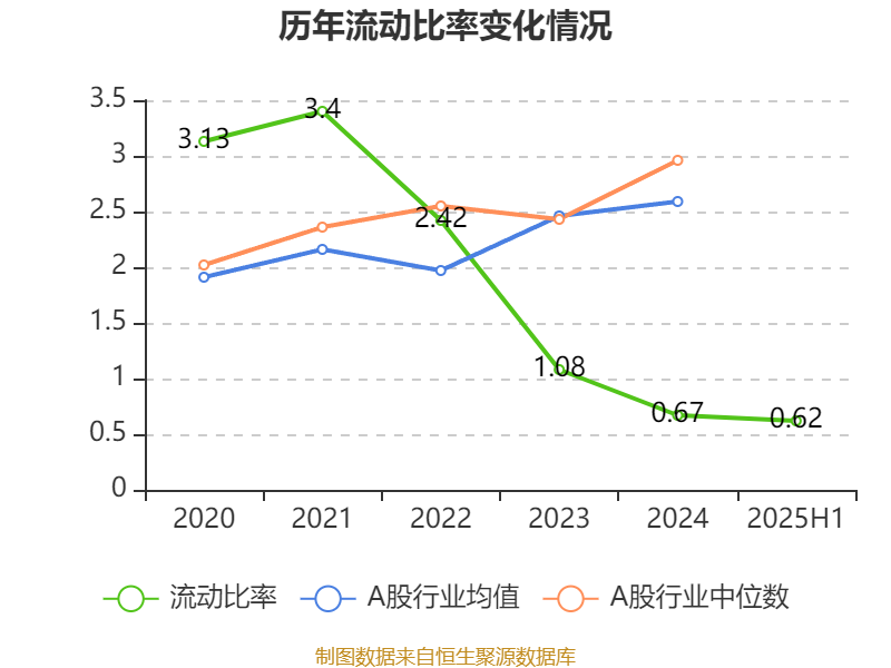 2025年上半年,公司流动比率为0.62,速动比率为0.37。