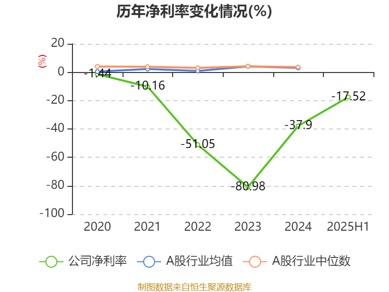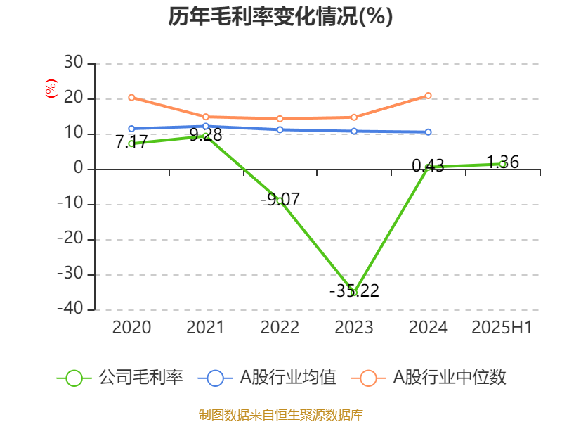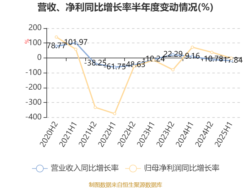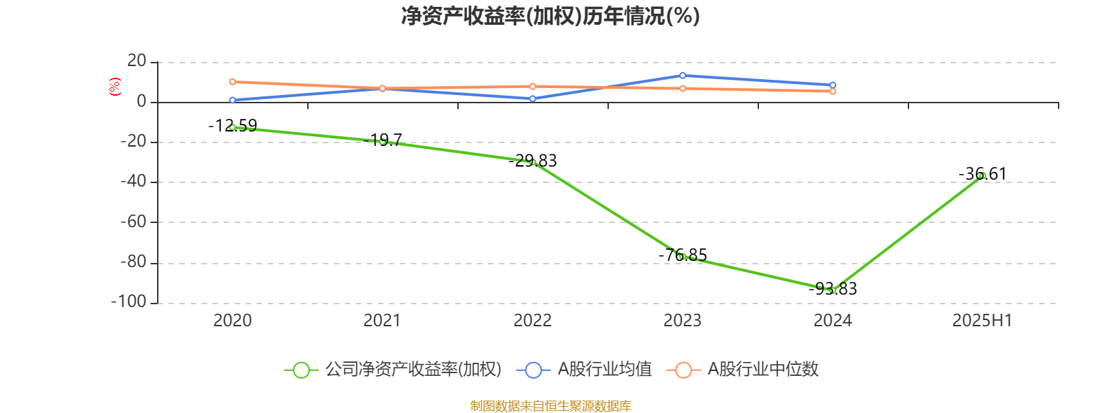 2025年上半年,公司平均净资产收益率为-36.61%,较上年同期下降24.64个百分点。