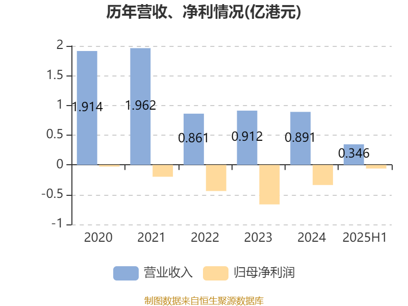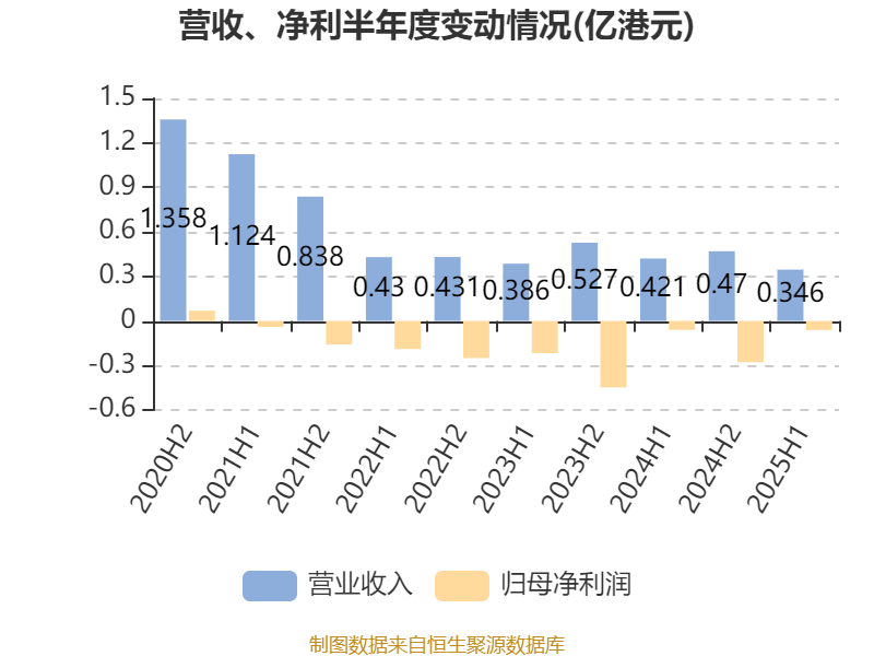 中证智能财讯南粤控股(01058)9月23日披露2025年中期报告。报告期内,公司实现营业收入3460.6万港元,同比下降17.84%;归母净利润亏损606.4万港元,上年同期亏损599.9万港元;据报告显示,南粤控股基本每股收益为-0.0113港元,平均净资产收益率为-36.61%。