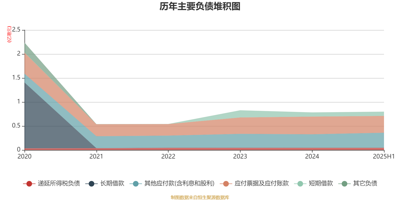 负债重大变化方面,截至2025年上半年,公司其他应付款(含利息和股利)较上期末增加11.59%,占公司总资产比重上升4.54个百分点;应付票据及应付账款较上期末减少4.99%,占公司总资产比重下降0.58个百分点;短期借款较上期末增加1.55%,占公司总资产比重上升0.47个百分点;递延所得税负债较上期末增加0.22%,占公司总资产比重上升0.18个百分点。