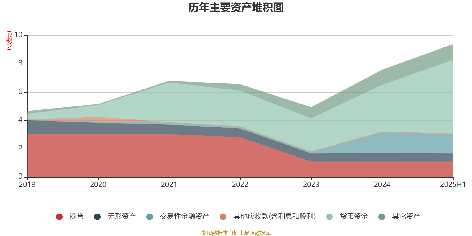 资产重大变化方面,截至2025年上半年,公司货币资金较上期末增加57.96%,占公司总资产比重上升11.94个百分点;交易性金融资产较上期末减少8.15%,占公司总资产比重下降5.07个百分点;商誉较上期末没有变化,占公司总资产比重下降2.78个百分点;无形资产较上期末减少2.92%,占公司总资产比重下降1.69个百分点。