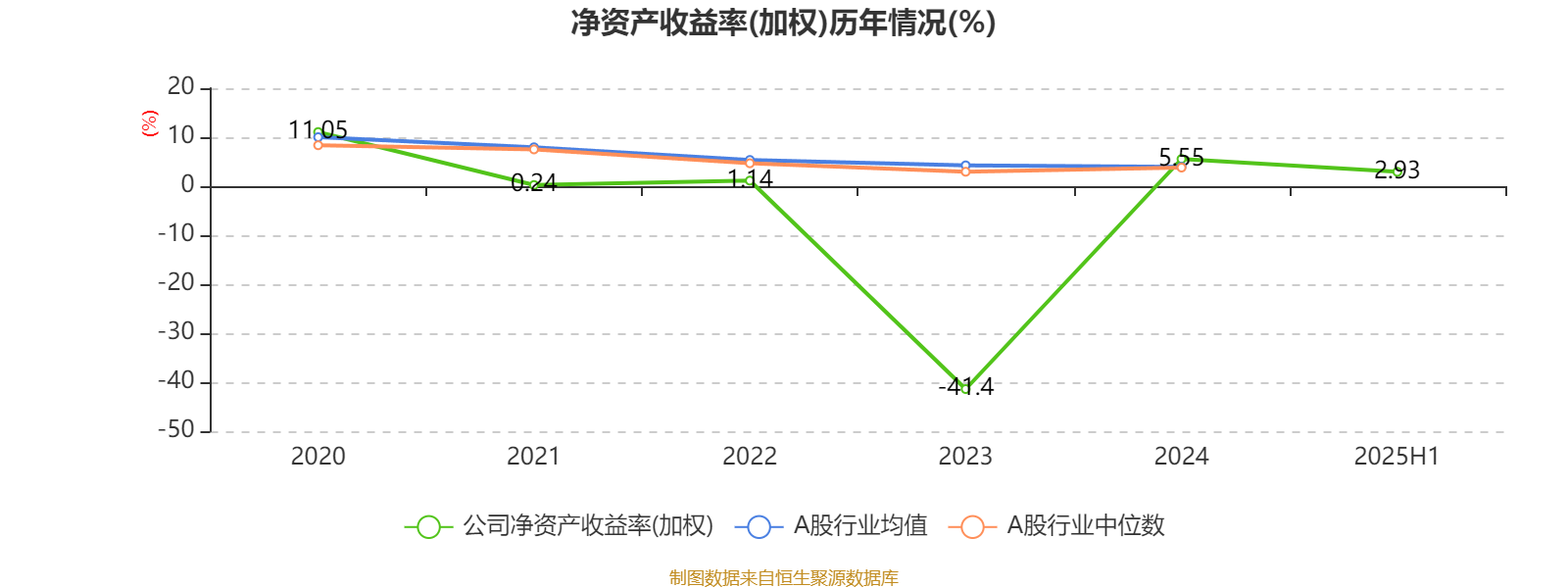 2025年上半年,公司平均净资产收益率为2.93%,较上年同期下降3.4个百分点。