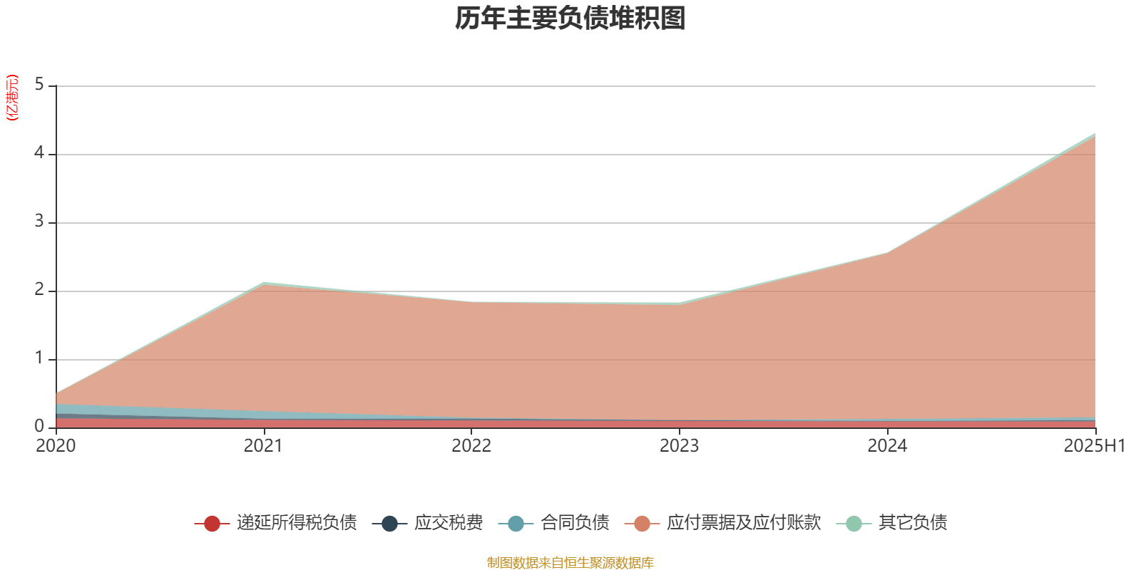 负债重大变化方面,截至2025年上半年,公司应付票据及应付账款较上期末增加69.52%,占公司总资产比重上升11.76个百分点;递延所得税负债较上期末减少3.19%,占公司总资产比重下降0.26个百分点;租赁负债占公司总资产的0.19%,上期末为0;应交税费较上期末增加280.82%,占公司总资产比重上升0.15个百分点。
