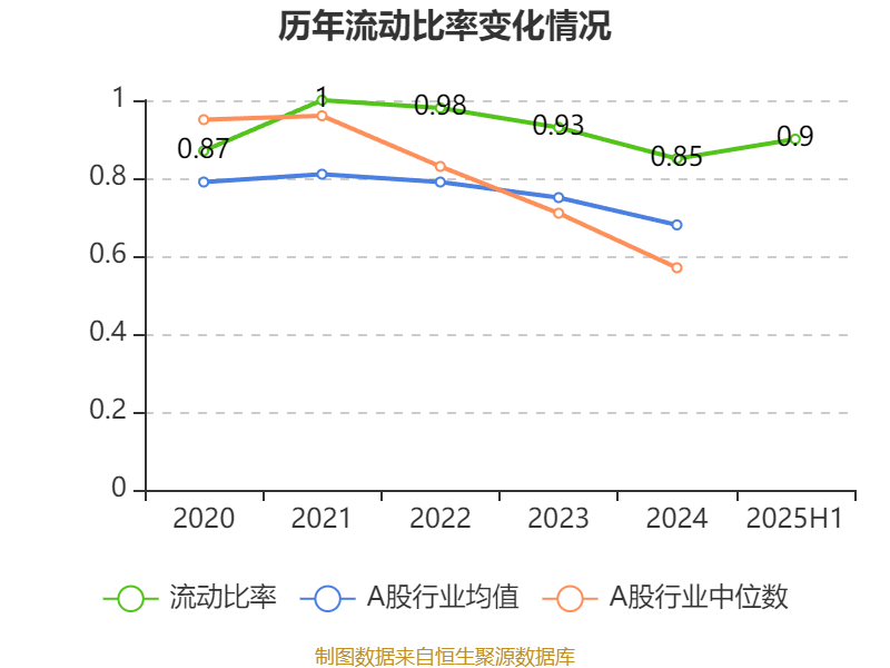 2025年上半年,公司流动比率为0.90,速动比率为0.6。