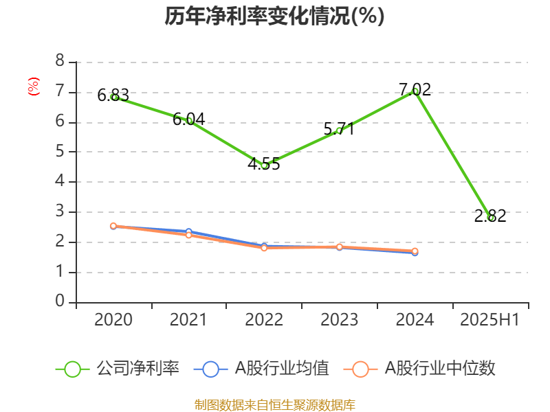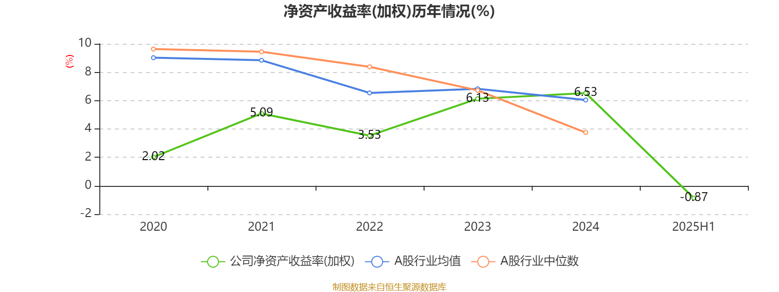 2025年上半年,公司平均净资产收益率为-0.87%,较上年同期下降5.65个百分点。