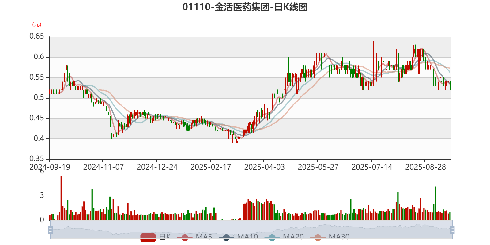 以9月18日收盘价计算,金活医药集团目前市盈率(TTM)约54.37倍,市净率(TTM)约0.48倍,市销率(TTM)约0.31倍。