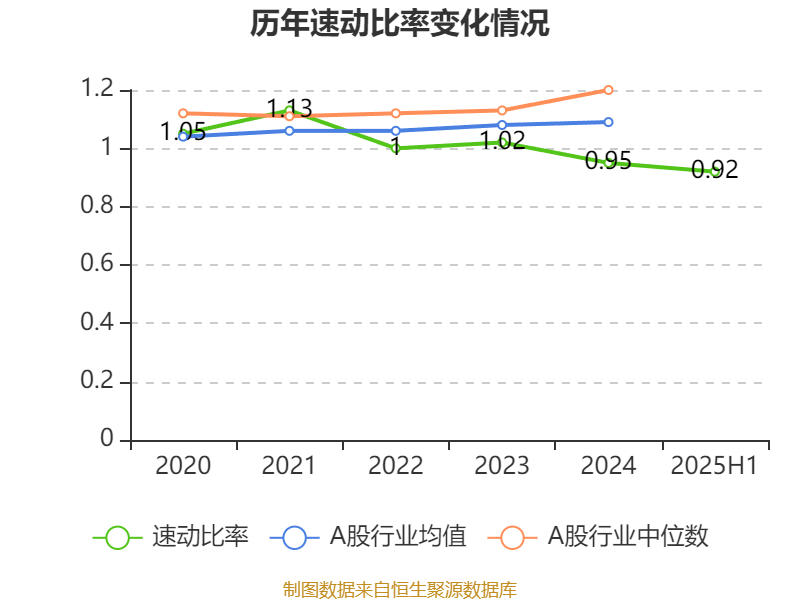 2025年上半年,公司流动比率为1.14,速动比率为0.92。