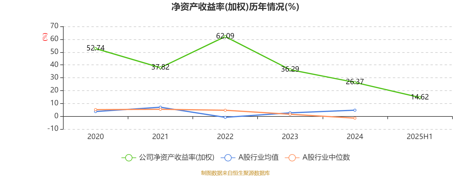 2025年上半年,公司平均净资产收益率为14.62%,较上年同期上升1.87个百分点。