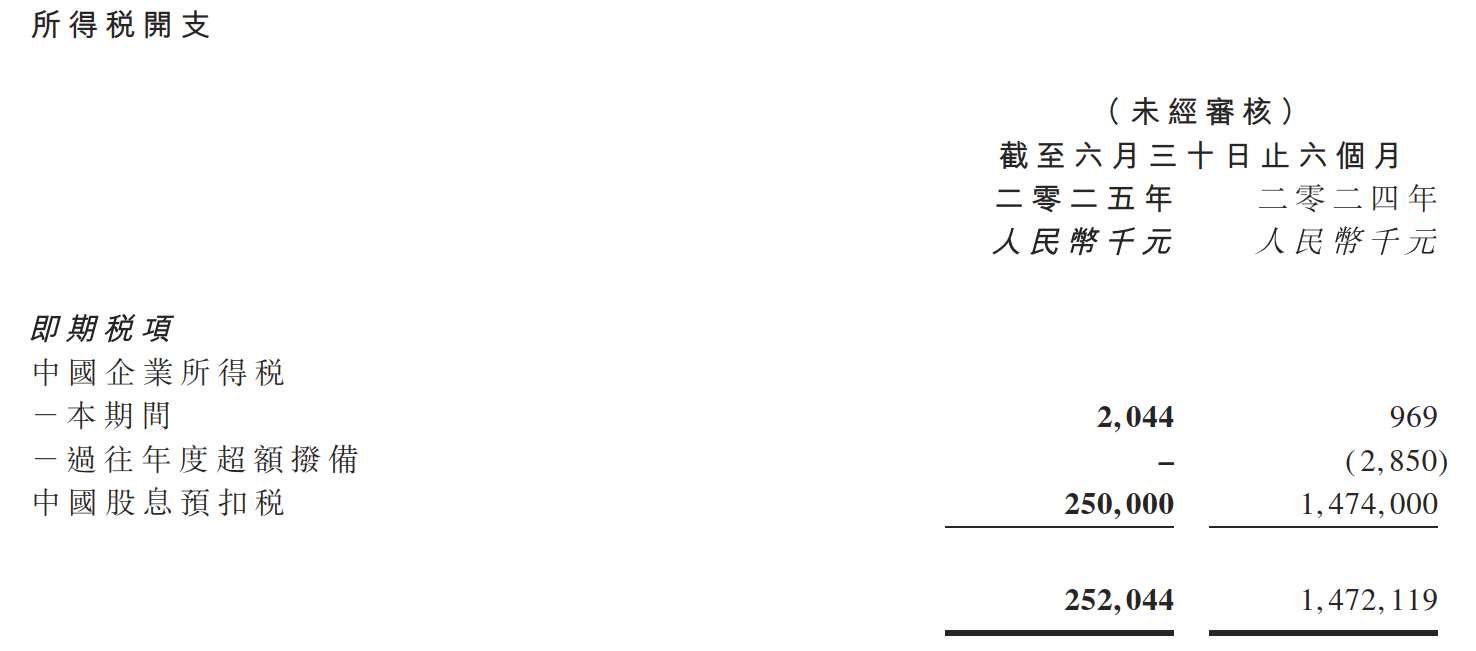整体来看,尽管华晨中国今年上半年实现净利增长,但核心因素却是税收开支同比减少所致。报告期内,公司所得税开支为2.52亿元,去年同期则为14.72亿元,由此本期同比减少82.88%。减少的原因是华晨中国附属公司2024年上半年支付了大额的股息预扣税14.74亿元,而今年上半年的股息预扣税大幅降至2.50亿元。