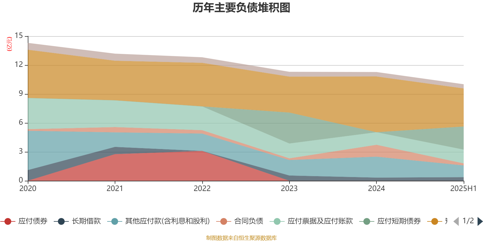 负债重大变化方面,截至2025年上半年,公司应付短期债券占公司总资产的6.92%,上期末为0;短期借款较上期末减少31.79%,占公司总资产比重下降5.11个百分点;合同负债较上期末减少82.93%,占公司总资产比重下降2.9个百分点;其他应付款(含利息和股利)较上期末减少44.05%,占公司总资产比重下降2.69个百分点。