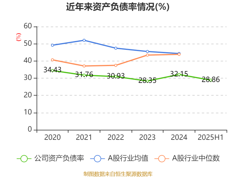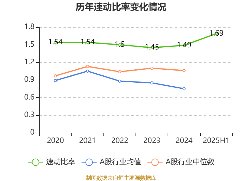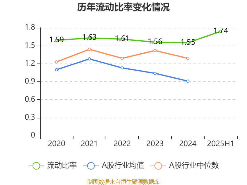 2025年上半年,公司流动比率为1.74,速动比率为1.69。
