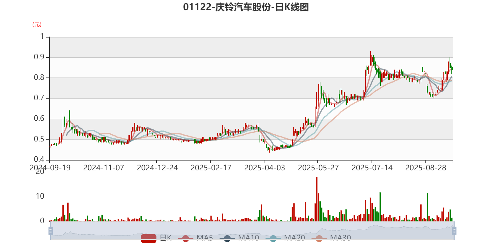 以9月19日收盘价计算,庆铃汽车股份目前市净率(TTM)约0.26倍,市销率(TTM)约0.47倍。