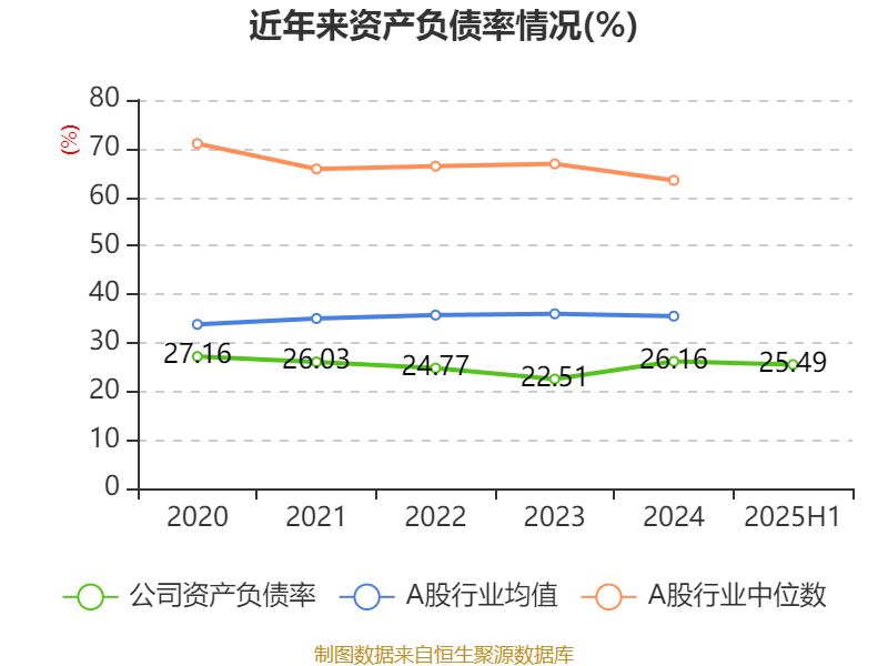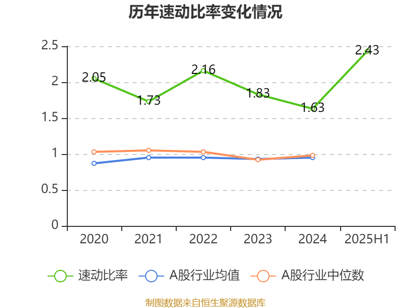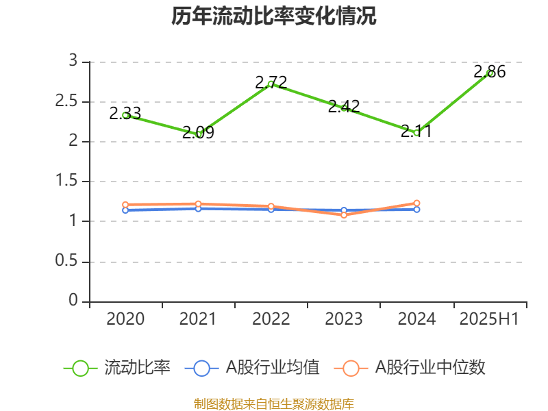 2025年上半年,公司流动比率为2.86,速动比率为2.43。