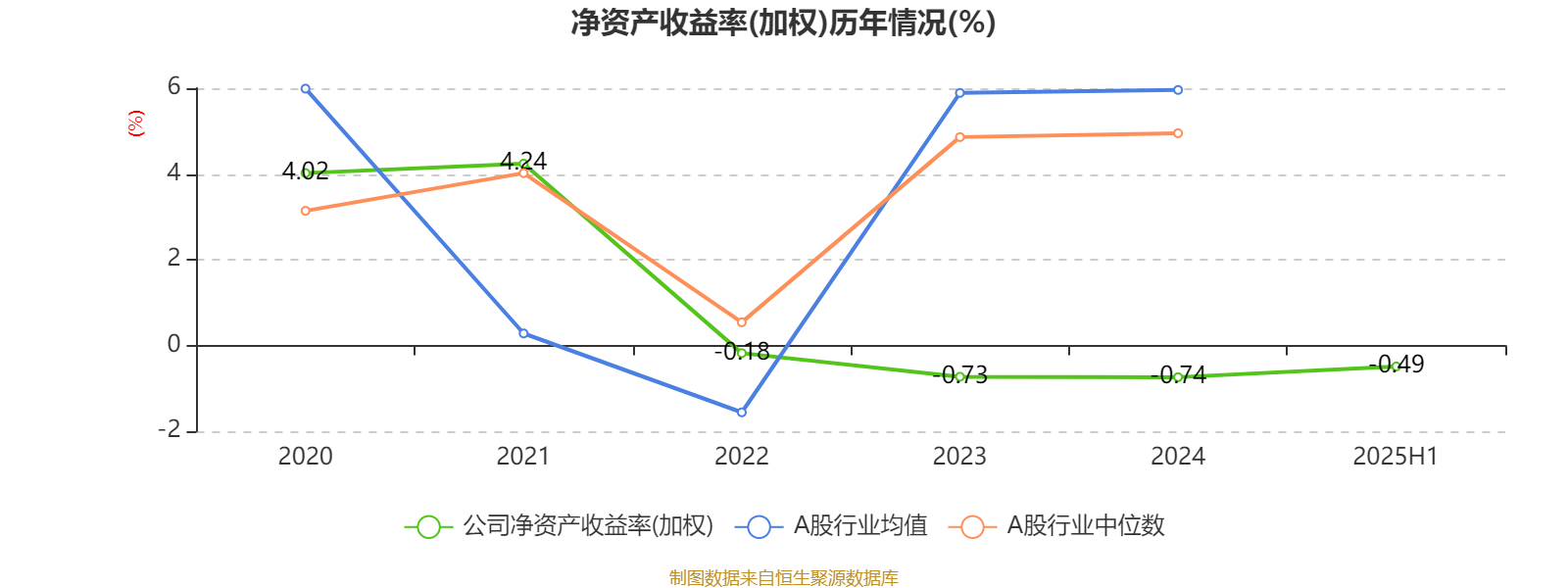 2025年上半年,公司平均净资产收益率为-0.49%,较上年同期下降0.32个百分点。