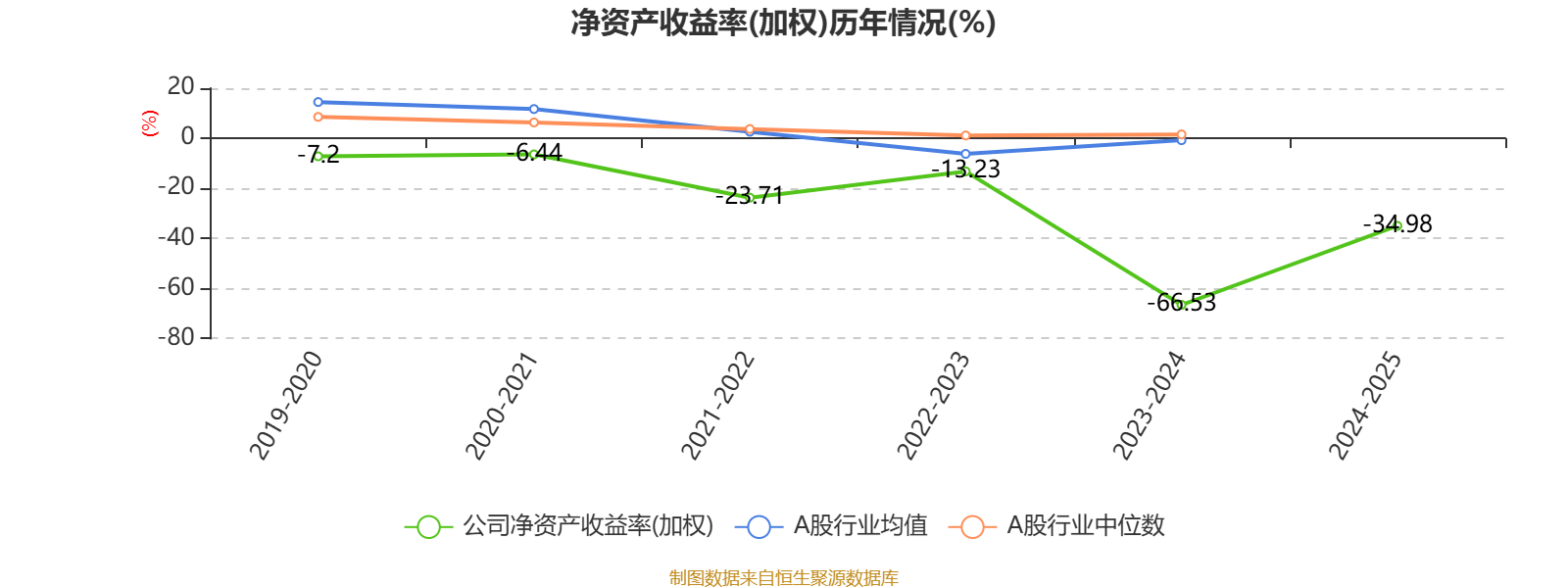 数据显示,报告期末公司平均净资产收益率为-34.98%,较上年同期上升31.55个百分点。