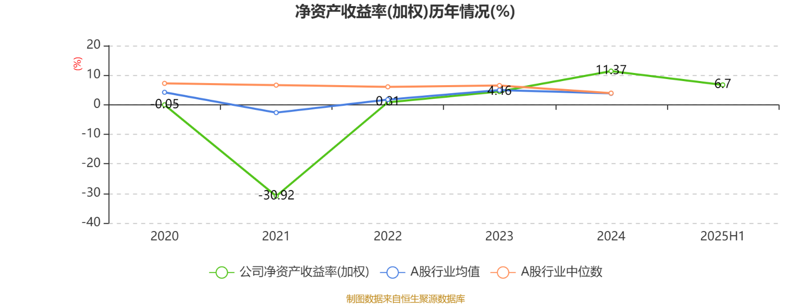 2025年上半年,公司平均净资产收益率为6.7%,较上年同期上升3个百分点。
