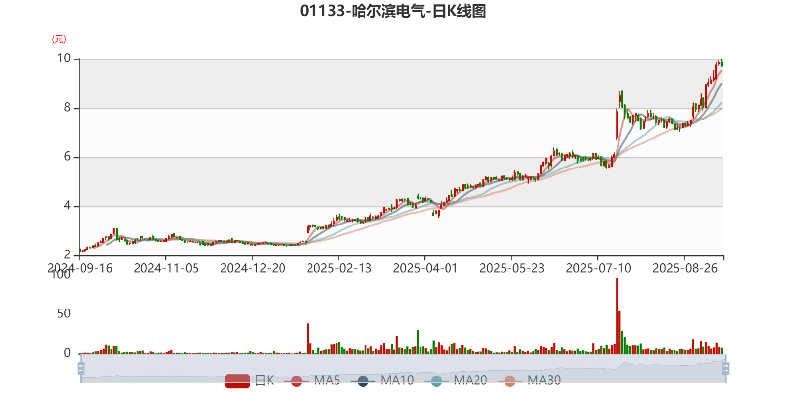 以9月15日收盘价计算,哈尔滨电气目前市盈率(TTM)约8.96倍,市净率(TTM)约1.23倍,市销率(TTM)约0.45倍。