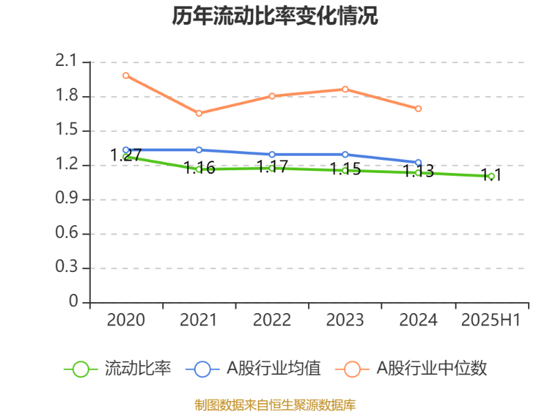 2025年上半年,公司流动比率为1.10,速动比率为0.83。