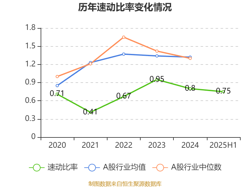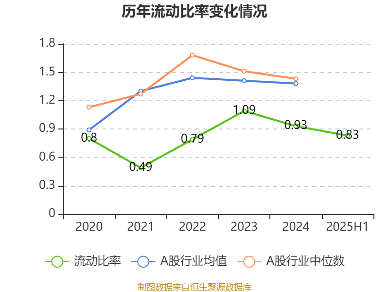 2025年上半年,公司流动比率为0.83,速动比率为0.75。