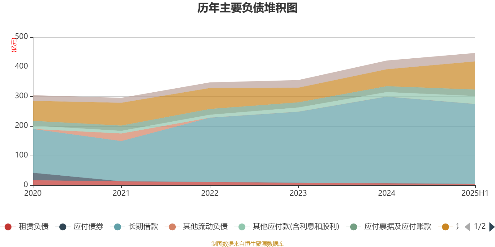负债重大变化方面,截至2025年上半年,公司长期借款较上期末减少8.01%,占公司总资产比重下降4.22个百分点;短期借款较上期末增加65.75%,占公司总资产比重上升4.17个百分点;其他应付款(含利息和股利)较上期末增加76.9%,占公司总资产比重上升1.33个百分点;租赁负债较上期末减少25.07%,占公司总资产比重下降0.21个百分点。