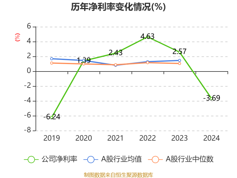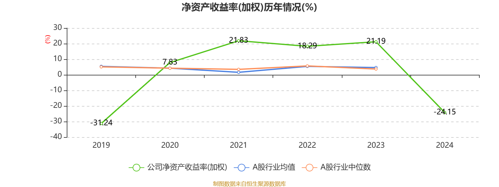 数据显示,2024年公司平均净资产收益率为-24.15%,较上年同期下降45.34个百分点。