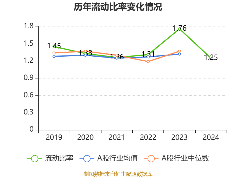 2024年,公司流动比率为1.25,速动比率为1.04。