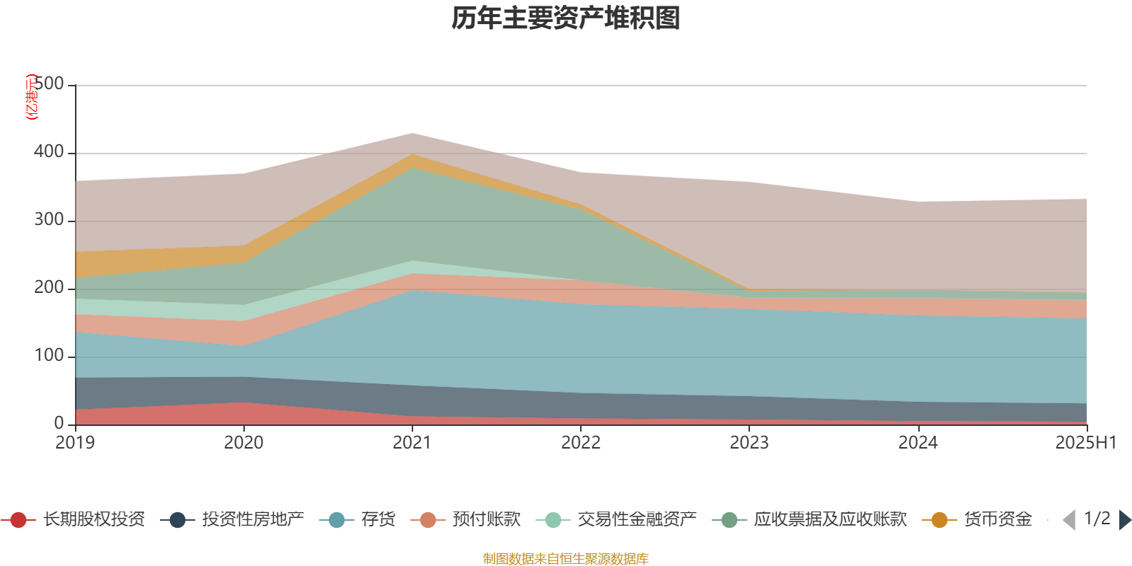 资产重大变化方面,截至2025年上半年,公司存货较上期末减少1.54%,占公司总资产比重下降1.07个百分点;投资性房地产较上期末减少4.92%,占公司总资产比重下降0.53个百分点;预付账款较上期末增加5.48%,占公司总资产比重上升0.32个百分点;应收票据及应收账款较上期末减少6.77%,占公司总资产比重下降0.28个百分点。