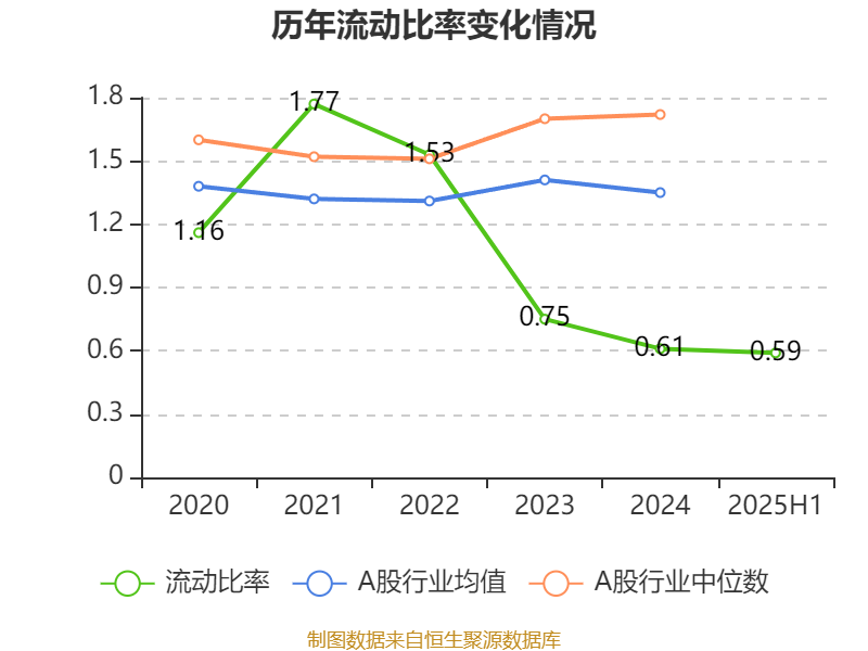2025年上半年,公司流动比率为0.59,速动比率为0.14。