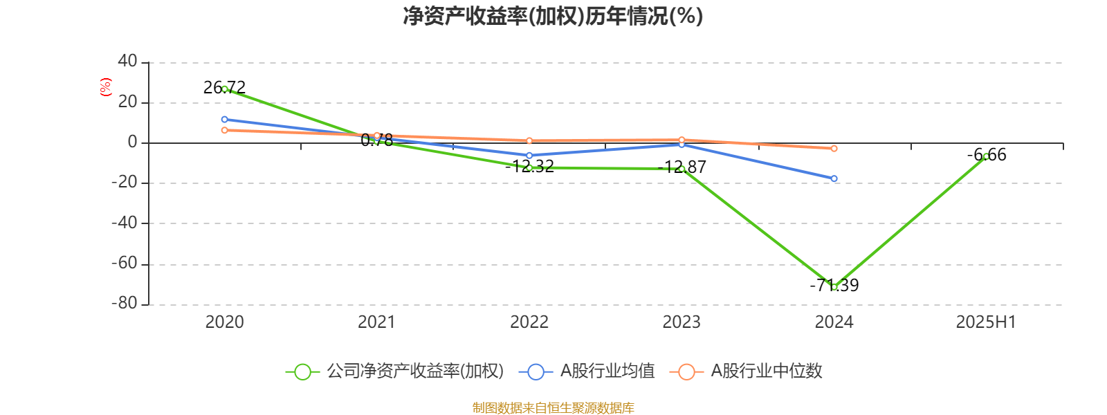 2025年上半年,公司平均净资产收益率为-6.66%,较上年同期上升7.6个百分点。