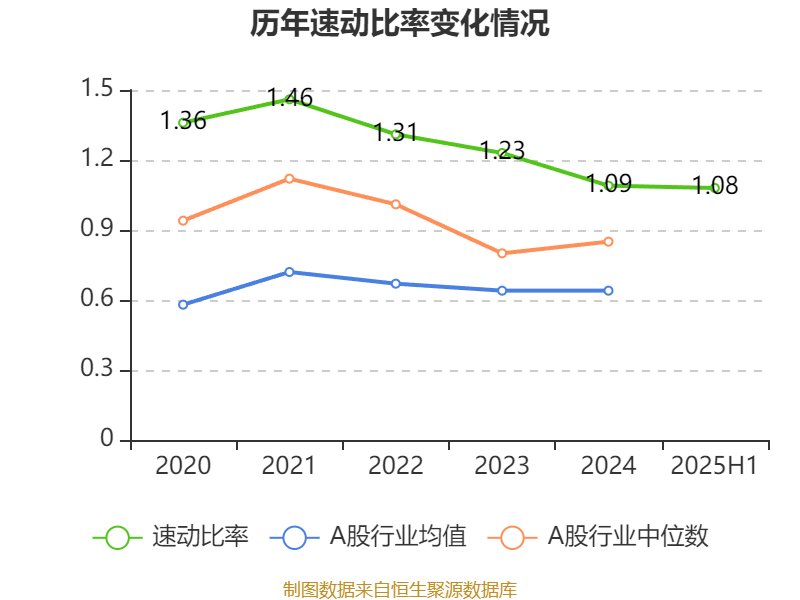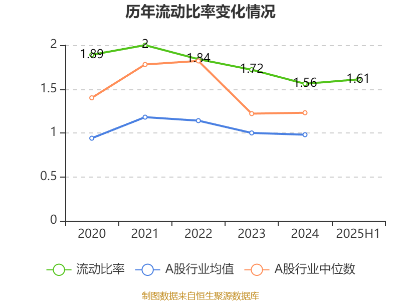 2025年上半年,公司流动比率为1.61,速动比率为1.08。